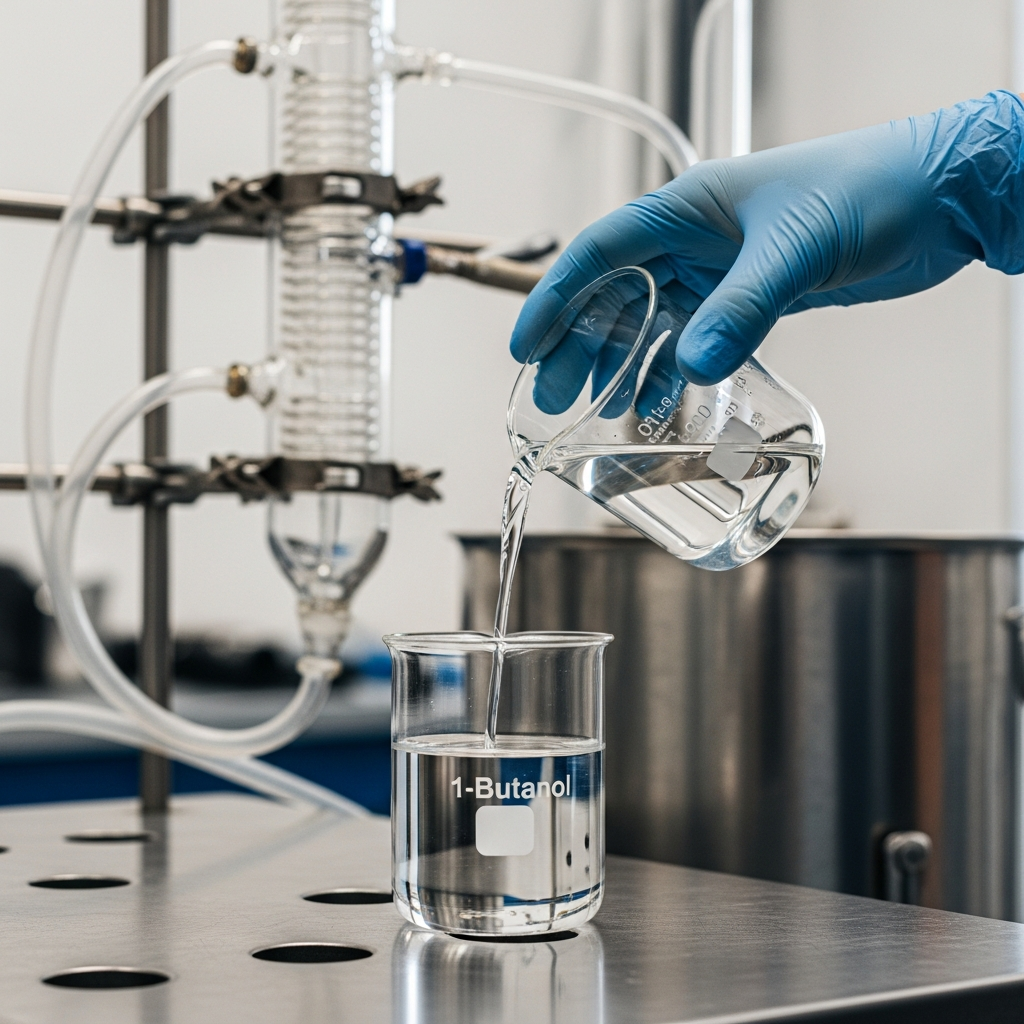 1-Butanol (CAS: 71-36-3), also known as n-butanol or propylcarbinol, is a four-carbon primary alcohol with the molecular formula $C_4H_9OH$. It is a clear, colorless liquid characterized by a distinct, pungent, banana-like odor. While it occurs naturally as a byproduct of the fermentation of sugars, industrial production is predominantly achieved through the “oxo process,” involving the hydroformylation of propylene. 1-Butanol serves as a vital bridge in the chemical industry, acting as both a high-performance solvent and a versatile chemical intermediate. Unlike shorter-chain Alcohol, it exhibits lower volatility and higher energy density, making it valuable in specialized industrial formulations. Its chemical profile allows it to blend with various organic solvents while maintaining limited solubility in water. Safety management is critical, as 1-Butanol is flammable and its vapors can cause respiratory and ocular irritation. It remains a cornerstone in the production of polymers, plasticizers, and coatings globally.