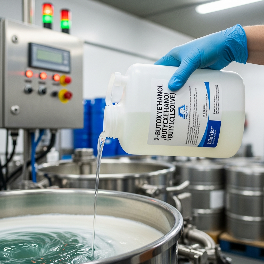 2-Butoxyethanol, widely known by its trade name Butyl Cellosolve, is a versatile organic solvent with the chemical formula C6H14O2 and CAS number 111-76-2. As a glycol ether, it features a unique molecular structure containing both ether and alcohol functional groups, granting it amphiphilic properties. This clear, colorless liquid is characterized by a mild, ether-like odor and is completely miscible with water and a broad range of organic solvents. Produced commercially by the reaction of ethylene oxide with n-butanol, it is highly valued for its high boiling point, low volatility, and excellent solvency for resins, oils, and waxes. Its ability to act as a coupling agent makes it indispensable in the formulation of water-reducible coatings and industrial cleaning agents. By stabilizing heterogeneous mixtures and improving flow characteristics, 2-Butoxyethanol ensures high performance in demanding industrial applications while meeting technical specifications for chemical stability and compatibility.