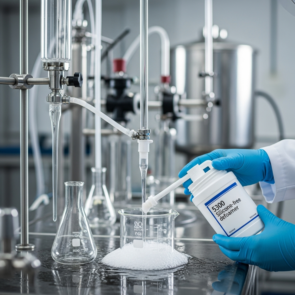 The 5300 Silicone-free defoamer represents a high-performance chemical solution specifically engineered for systems where silicone contamination must be strictly avoided. This advanced formulation is comprised of specialized fatty acid esters and hydrocarbon derivatives, providing exceptional foam suppression without compromising the surface tension or adhesion properties of the substrate. Designed for demanding industrial environments, the 5300 grade functions effectively across wide temperature ranges and pH levels, ensuring process stability in complex aqueous and non-aqueous formulations. Unlike traditional silicone-based alternatives, this product eliminates the risk of “fish-eyes,” cratering, or surface defects, making it an essential additive for high-quality finishing applications. Its unique molecular structure allows for rapid bubble rupture and long-lasting foam inhibition during high-shear processing, storage, and application. By balancing compatibility with efficiency, the 5300 defoamer enhances production throughput while maintaining the integrity of the final product’s aesthetic and functional characteristics across various industrial coating and resin systems within modern manufacturing.