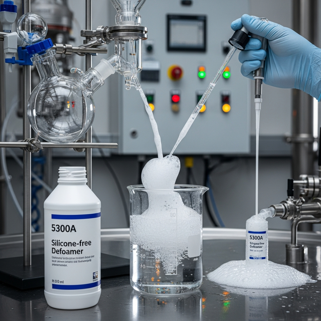 The 5300A Silicone-free defoamer represents a high-performance chemical solution engineered specifically for systems where silicone contamination is strictly prohibited. This advanced formulation is comprised of a synergistic blend of fatty acid esters and polyether derivatives, designed to facilitate rapid air release and foam suppression without compromising surface adhesion or clarity. Unlike traditional silicone-based additives, 5300A minimizes the risk of surface defects such as craters, pinholes, or “fish-eyes” in sensitive coating applications. Its unique chemical architecture allows it to maintain exceptional stability across a broad pH range and varying temperature gradients, ensuring consistent performance during high-shear mixing and application processes. As a non-ionic surfactant blend, it integrates seamlessly into both aqueous and non-aqueous media, providing versatile deaeration capabilities for industrial formulations. By prioritizing environmental compatibility and technical efficiency, the 5300A grade serves as an essential component for manufacturers seeking high-quality finishes in automotive, wood, and industrial protective coatings environments utilized globally.
