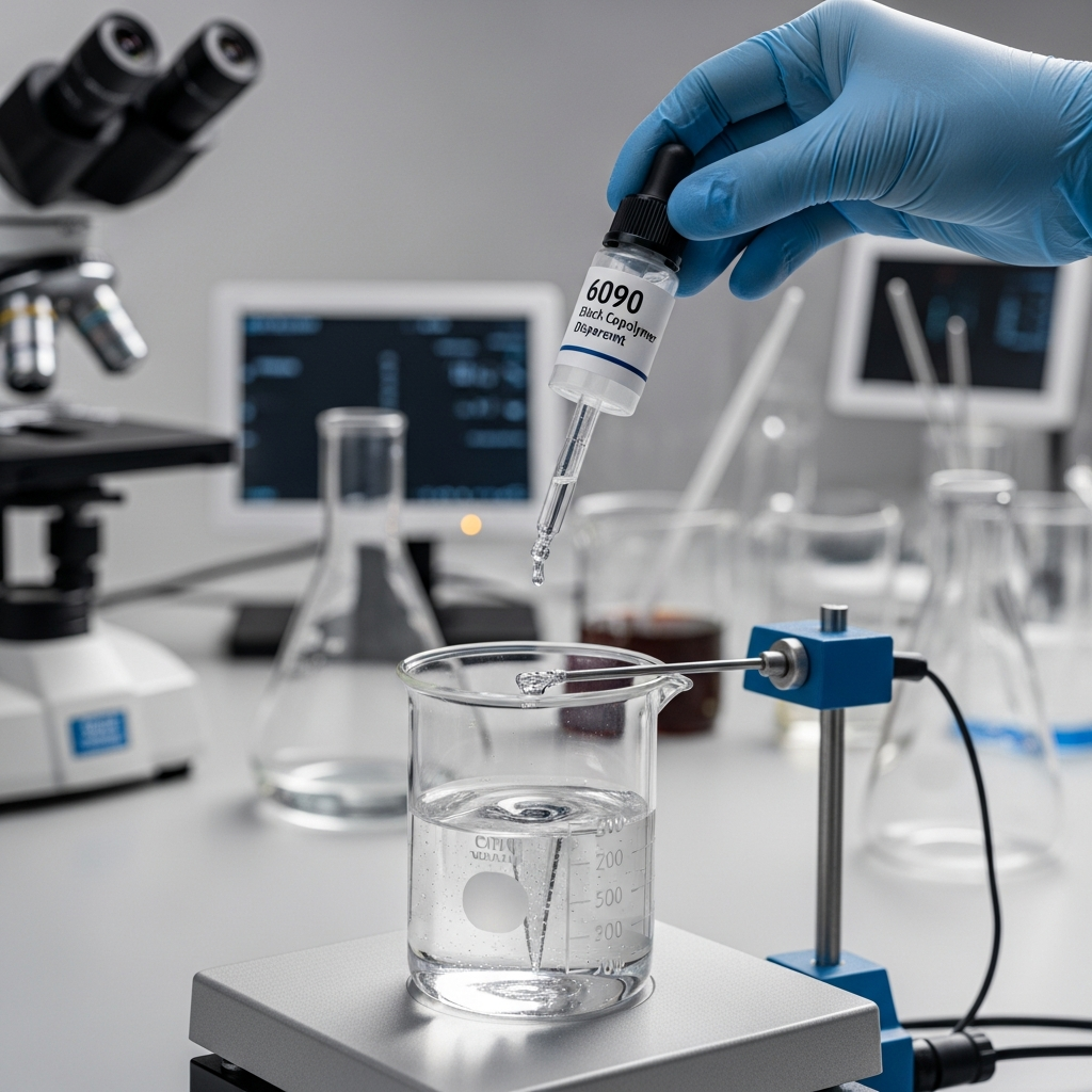 The 6090 block copolymer dispersant represents a pinnacle in high-performance additive technology, specifically engineered for the stabilization of organic and inorganic pigments in high-solids solvent-borne systems. This polymeric dispersant utilizes a sophisticated controlled radical polymerization process, resulting in a precise AB or ABA block structure. These structural segments are meticulously designed: one block functions as a high-affinity anchoring group that adsorbs strongly onto pigment surfaces, while the other provides superior steric stabilization through extended chain solvatophores. This mechanism effectively prevents pigment flocculation, settling, and syneresis, ensuring long-term dispersion stability. By significantly reducing mill-base viscosity, the 6090 additive allows for higher pigment loading during the grinding phase, thereby increasing production efficiency and throughput. Furthermore, it enhances optical properties by optimizing particle size distribution, leading to exceptional color strength, high gloss, and minimized haze in demanding coating applications. Its versatile compatibility makes it a critical component for premium industrial and automotive coatings.