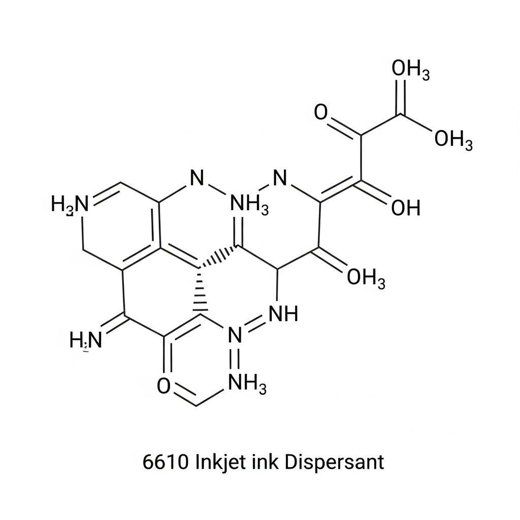 The 6610 Inkjet ink dispersant is a high-performance, non-ionic polymeric surfactant specifically engineered for the stabilization of organic pigments and high-surface-area carbon blacks within sophisticated inkjet formulations. Utilizing advanced controlled radical polymerization techniques, this dispersant features a precisely tailored block copolymer architecture. Its structure consists of powerful pigment-affinic groups that anchor firmly onto the particle surface, coupled with highly solvated polymeric chains that extend into the medium to provide robust steric stabilization. This dual mechanism effectively prevents flocculation and sedimentation, even under high-temperature storage conditions. Designed primarily for solvent-based, eco-solvent, and UV-curable ink systems, 6610 significantly enhances the rheological profile of the ink, ensuring low viscosity and excellent Newtonian flow behavior. By optimizing pigment wetting and de-agglomeration, it enables the production of inks with exceptional color strength, high gloss, and superior transparency. This dispersant is essential for achieving the filtration requirements and nozzle stability necessary for modern industrial piezoelectric printheads.