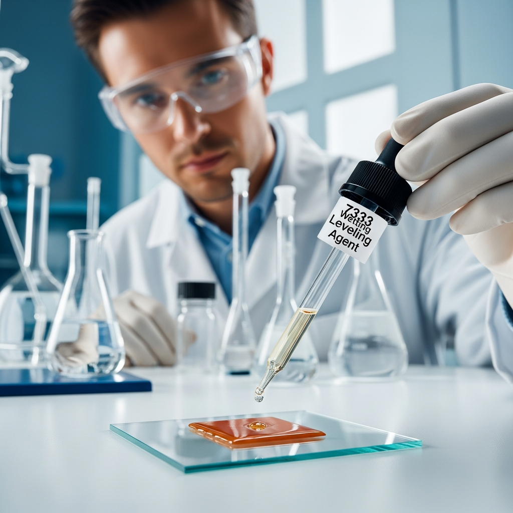 The 7333 Wetting Levelling agent is a specialized organosilicon-based additive specifically engineered for high-performance coating and ink formulations. Chemically identified as a polyether-modified polydimethylsiloxane, this surfactant is designed to significantly reduce the surface tension of liquid systems, thereby ensuring superior wetting of difficult, low-energy substrates such as plastics, oily metals, and wood. Its unique molecular architecture balances hydrophobic silicone backbones with hydrophilic polyether chains, providing exceptional leveling properties without causing excessive foam stabilization or inter-coat adhesion issues. In waterborne, solvent-borne, and radiation-curable systems, 7333 acts as a multi-functional processing aid that eliminates common surface defects like craters, pinholes, and orange peel effects. By facilitating a uniform film formation, it enhances the overall aesthetic quality and durability of the finished coating. This agent is favored for its high compatibility across diverse resin matrices, making it a versatile tool for formulators seeking to optimize substrate coverage and achieve a flawless finish in demanding industrial environments.