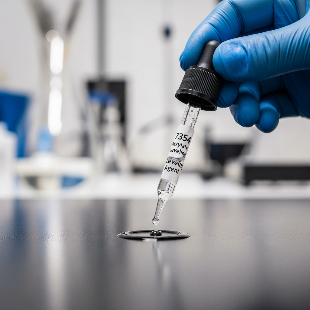 The 7354 Acrylate Levelling Agent is a high-performance, non-silicone surface additive specifically engineered for solvent-borne and solvent-free coating systems. Composed of a specialized polyacrylate polymer, this agent functions by reducing surface tension gradients within the liquid film during the drying and curing process. Its primary mechanism involves migrating to the air-liquid interface to provide a uniform surface energy profile, which effectively eliminates common surface defects such as orange peel, pinholes, and craters. Unlike silicone-based additives, the 7354 variant maintains excellent inter-coat adhesion and does not induce foam stabilization, making it ideal for multi-layer coating applications. It is particularly valued in high-gloss topcoats where optical clarity and long-wave leveling are critical parameters. Furthermore, its chemical stability ensures consistent performance across various resin chemistries including epoxies, polyurethanes, and polyesters. By optimizing the rheological flow of the coating, 7354 ensures a smooth, mirror-like finish, enhancing both the aesthetic appeal and the protective integrity.