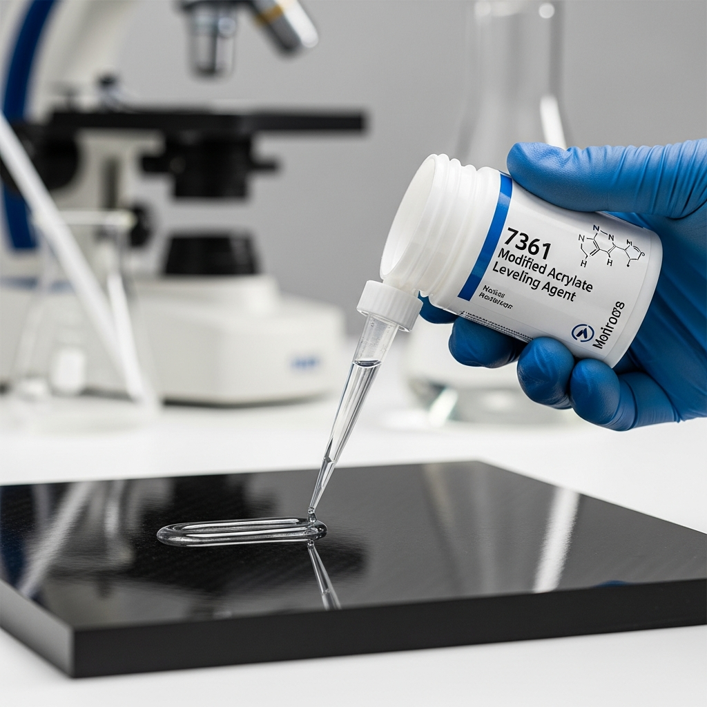 The 7361 Modified Acrylate Levelling Agent represents a high-performance, silicone-free surface additive specifically engineered to optimize the surface tension of liquid coatings and ink systems. Based on advanced fluorocarbon-modified polyacrylate technology, this specialized agent effectively addresses common film defects such as orange peel, craters, and fish-eyes by ensuring uniform surface tension across the substrate. Unlike traditional silicone additives, the 7361 grade offers exceptional recoatability and does not interfere with inter-coat adhesion, making it an ideal choice for complex multi-layer coating systems. Its unique molecular architecture provides a balanced migration profile to the air-liquid interface, facilitating rapid de-aeration and flow optimization without compromising the clarity or gloss of the final cured film. Suitable for both solvent-borne and high-solid formulations, 7361 serves as a versatile tool for formulators seeking to achieve mirror-like finishes in demanding industrial environments where surface aesthetics and mechanical durability are critical parameters for achieving high quality commercial success.