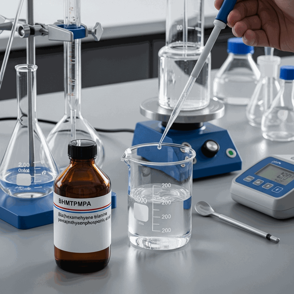 Bis(hexamethylene triamine penta(methylenephosphonic acid)), commonly known as BHMTPMPA (CAS: 34690-00-1), is a high-performance, multifunctional organic phosphonic acid scale inhibitor and dispersant. It is structurally engineered with multiple phosphonic acid functional groups, providing it with exceptional chelating capabilities for various metal ions, including calcium, magnesium, iron, and barium. BHMTPMPA is specifically designed to outperform conventional phosphonates in harsh industrial environments characterized by high hardness, high alkalinity, and elevated temperatures. Its “threshold effect” allows for effective scale inhibition at substoichiometric concentrations. Furthermore, BHMTPMPA exhibits excellent thermal stability, remaining effective at temperatures exceeding 120°C, and maintains its chemical integrity across a broad pH spectrum. This makes it an indispensable additive in industrial water treatment, oilfield operations, and textile processing, where it prevents the formation of scale and provides superior dispersion of existing mineral deposits, ensuring operational efficiency and equipment longevity.