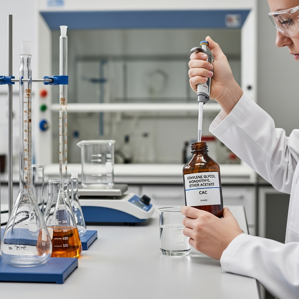 CAC acts as a slow-evaporating solvent, making it indispensable in applications requiring precise control over drying times and film formation. It demonstrates excellent solvency for various resins, including nitrocellulose, acrylics, epoxies, and polyurethanes. However, it is important to note that due to its classification as a reproductive toxicant, its use is strictly regulated in many jurisdictions (such as under REACH in the EU). In industrial settings, it is handled with rigorous safety protocols, often being replaced by propylene-based alternatives like PMA (Propylene Glycol Methyl Ether Acetate) where applicable.