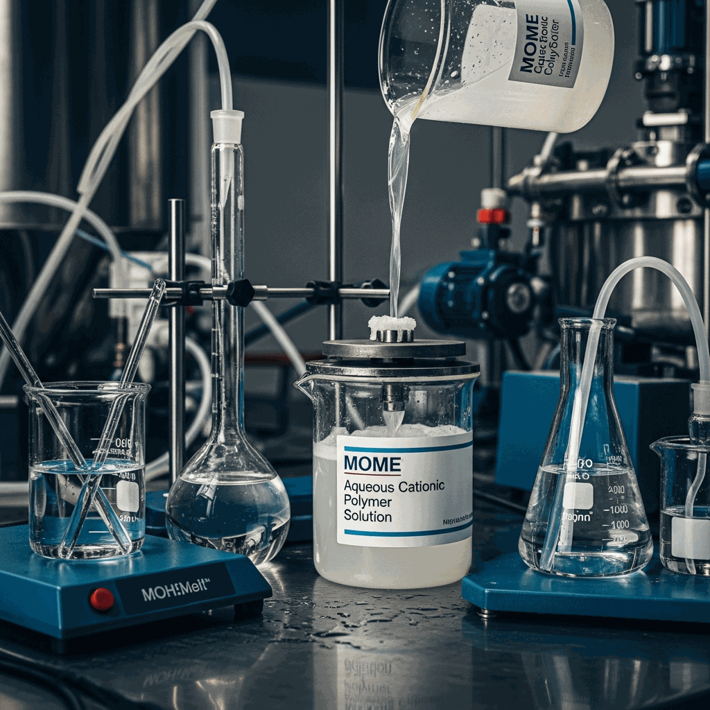 MOME Aqueous Cationic Polymer Solution represents a high-performance water-soluble polyquaternary ammonium compound engineered for diverse industrial processing requirements. Characterized by its high charge density and exceptional stability across varying pH ranges, this polymer solution functions effectively as a primary coagulant and flocculant in complex aqueous environments. The chemical structure facilitates rapid neutralization of negatively charged colloidal particles, promoting efficient aggregation and sedimentation processes. Unlike traditional inorganic salts, this cationic polymer produces significantly lower sludge volumes while maintaining superior clarity in treated systems. It is non-hazardous and exhibits excellent compatibility with various anionic surfactants and suspended solids commonly encountered in industrial waste streams. Its aqueous nature ensures ease of handling and precise dosing in automated delivery systems. By utilizing advanced polymerization techniques, the solution achieves a consistent molecular weight distribution, optimizing its performance for critical separation tasks. Industries rely on this specific formulation for its reliability, cost-effectiveness, and environmental compliance excellence.