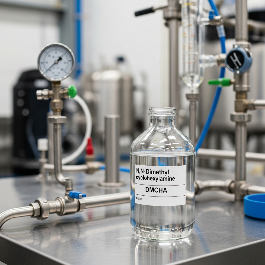 N,N-Dimethylcyclohexylamine (DMCHA), registered under CAS No. 98-94-2, is a versatile tertiary amine essential to modern polymer chemistry. Physically, it manifests as a clear, colorless to light yellow liquid characterized by a distinct, pungent ammoniacal odor. It features a boiling point of approximately 160°C and maintains low viscosity, which aids its integration into various formulations. Industrially, DMCHA is primarily employed as a high-efficiency catalyst in the production of rigid polyurethane foams, where it effectively balances the blowing and gelling reactions required for optimal structural integrity. It also serves as a critical intermediate in the synthesis of rubber accelerators, pharmaceuticals, and corrosion inhibitors. From a safety standpoint, DMCHA is classified as a flammable and corrosive substance. It poses significant health risks, including severe skin burns, permanent ocular damage, and respiratory irritation upon inhalation. Technical personnel must utilize stringent personal protective equipment (PPE) and maintain robust ventilation systems to ensure safe handling and storage.