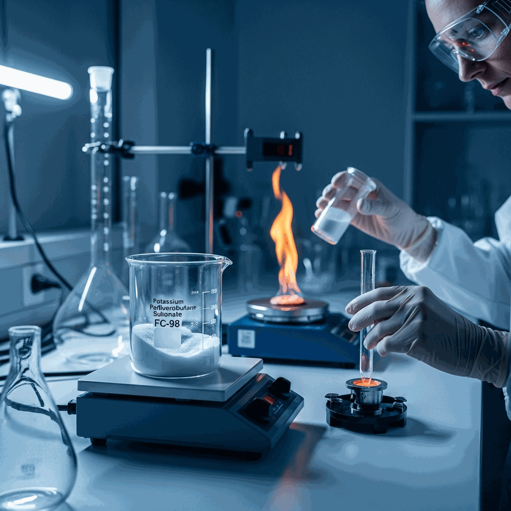 Potassium Perfluorobutane Sulfonate, commonly known by its commercial designation FC-98 or PFBSK, is a high-performance anionic fluorinated surfactant and flame retardant additive. Chemically represented by CAS number 29420-49-3, this salt consists of a perfluorinated four-carbon chain attached to a sulfonate group with a potassium cation. It has gained significant prominence as a sustainable alternative to long-chain perfluorinated compounds like PFOS due to its lower bioaccumulation potential. As a white or yellowish crystalline powder, FC-98 exhibits exceptional thermal stability and chemical resistance, making it ideal for high-temperature processing environments. Its primary mechanism involves reducing surface tension and facilitating the formation of a protective char layer during combustion. This material is particularly valued in the polycarbonate industry for providing transparency while achieving rigorous fire safety standards without compromising mechanical properties. Its regulatory profile and efficiency at very low concentrations make it a critical component in modern polymer engineering and specialty chemical manufacturing.