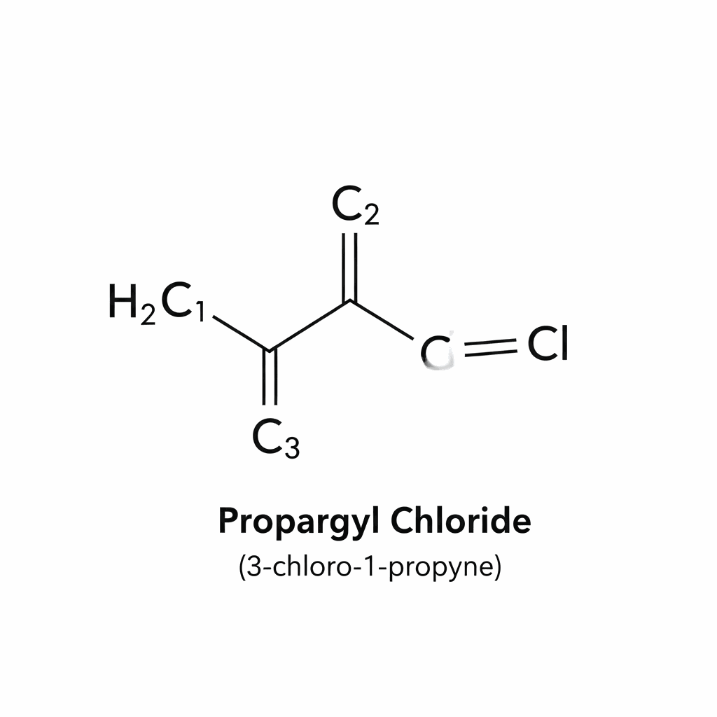 Propargyl chloride, scientifically identified as 3-chloro-1-propyne with the CAS registry number 624-65-7, represents a highly versatile and reactive organochlorine compound widely utilized within the global chemical manufacturing industry. This colorless to pale yellow liquid is characterized by its distinctive pungent odor and possesses a dual functional nature, featuring both a terminal alkyne group and a primary alkyl halide moiety. Such structural attributes facilitate a broad spectrum of chemical transformations, including nucleophilic substitutions, coupling reactions, and cyclizations. As a fundamental building block, it serves a critical role in the synthesis of diverse pharmaceuticals, agrochemicals, and specialized organic intermediates. Due to its high reactivity and flammable nature, propargyl chloride requires stringent handling protocols, specialized storage conditions, and rigorous safety measures to mitigate risks associated with its volatility and potential toxicity. Its utility as a precursor for propargyl groups makes it indispensable for researchers developing innovative molecular structures across advanced material science
