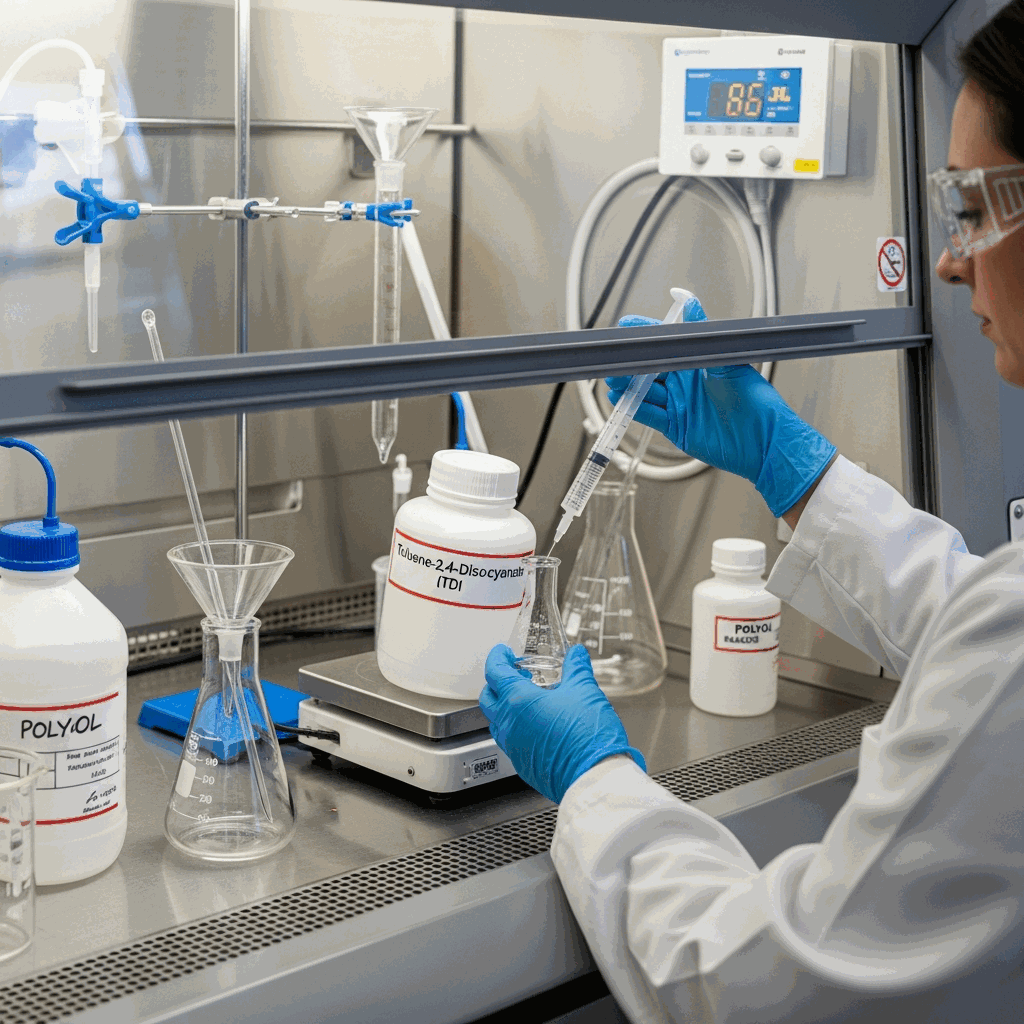 At ambient temperatures, TDI exists as a clear to pale-yellow liquid with a sharp, pungent odor. Its primary chemical utility lies in its high reactivity toward polyols, forming polyurethane polymers through exothermic addition reactions. Due to its significant vapor pressure and status as a potent respiratory sensitizer, TDI is handled under strict regulatory oversight, requiring advanced ventilation and rigorous personal protective equipment (PPE) protocols to ensure worker safety.